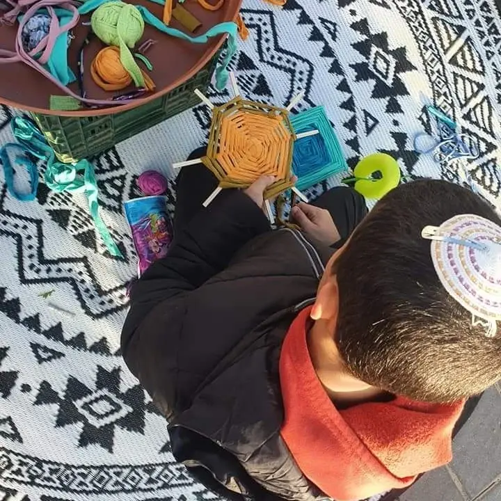 הכנת נול מקרטון וחוטי פשתן ואריגת חומרי טבע לתוכו.
